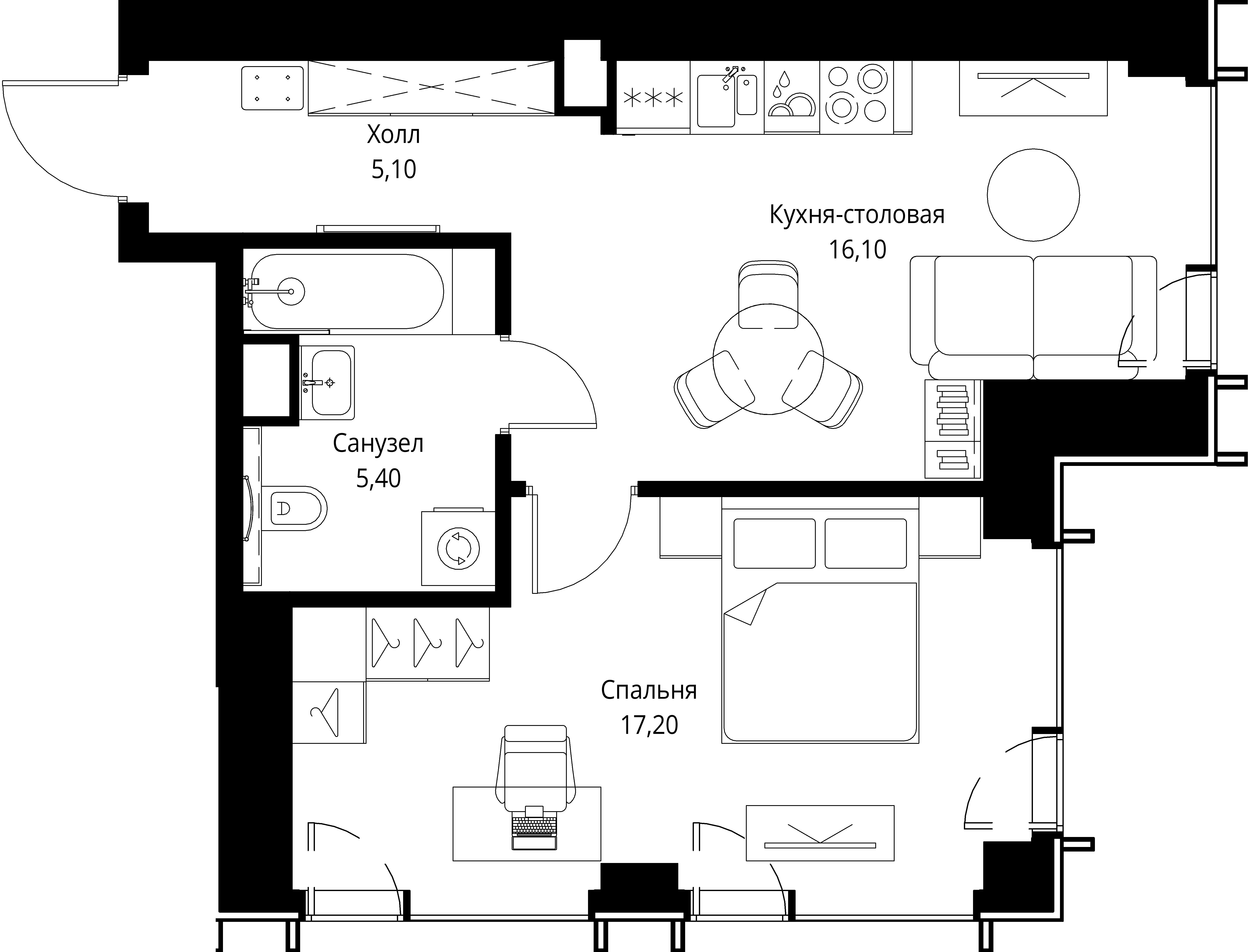 Площадь 43,3 м2