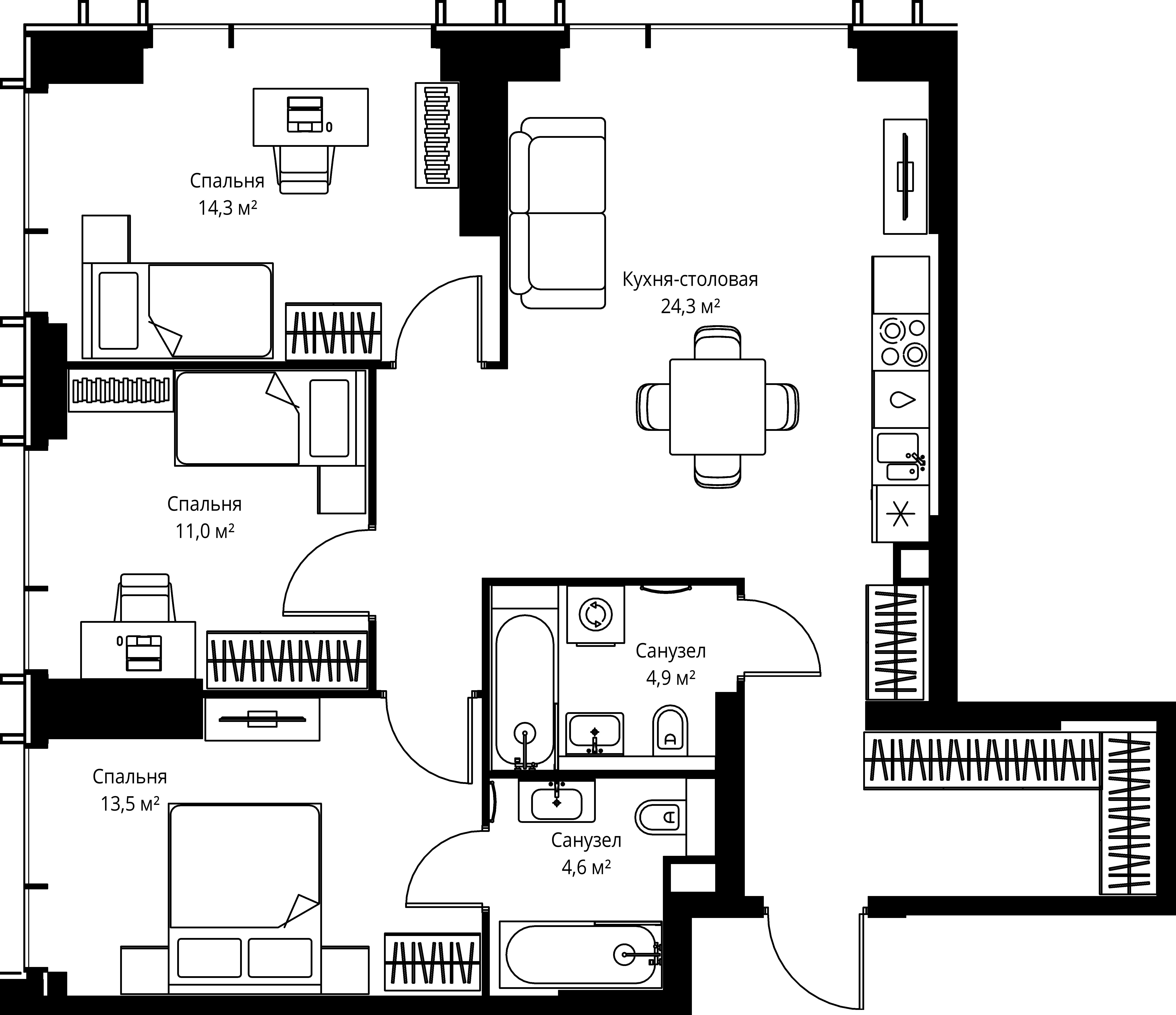 Квартира 87,4 м² - 24 этаж
