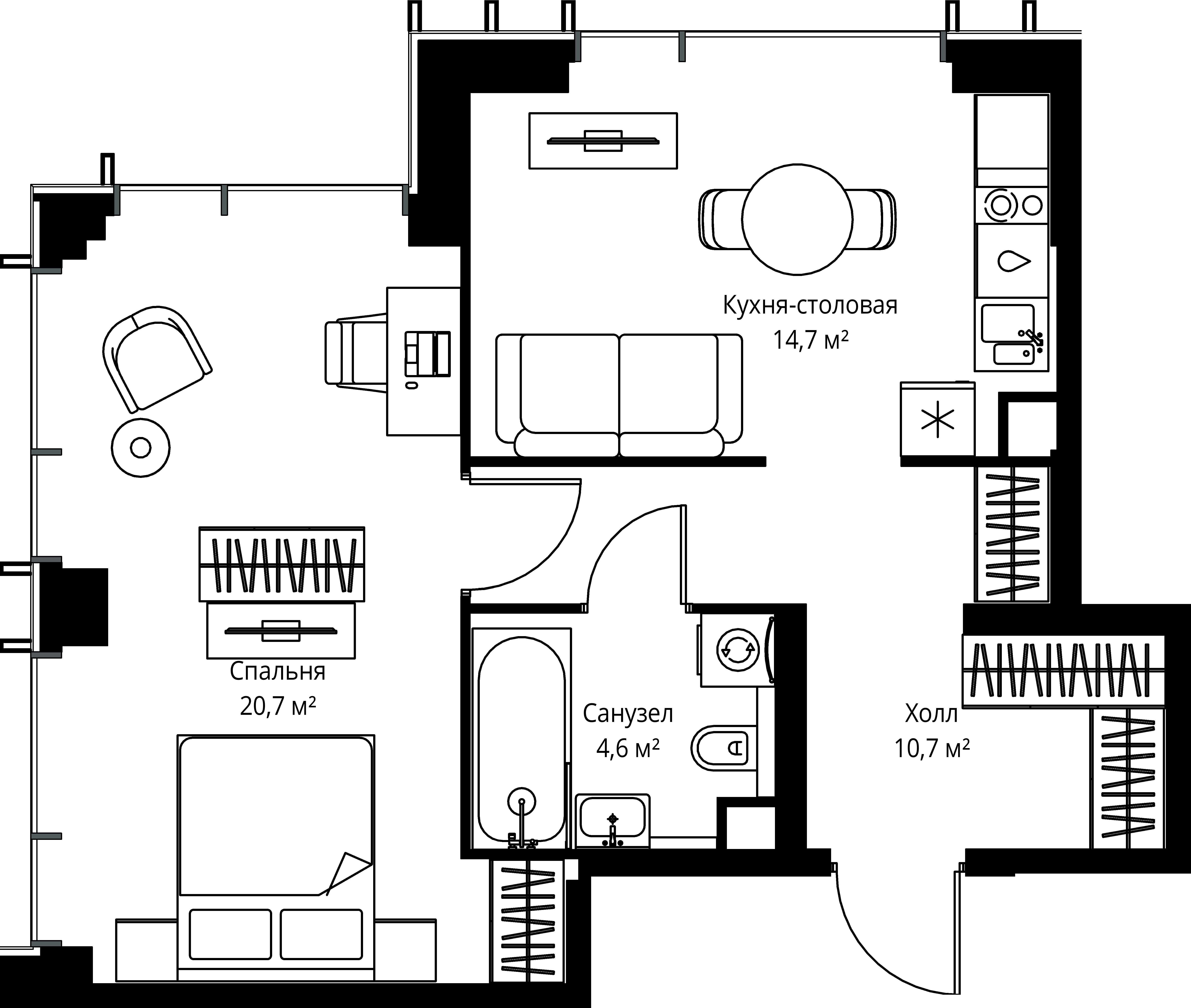 Квартира 50,7 м² - 55 этаж